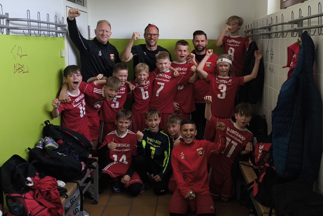 Erster Sieg in der Landesliga-Goldstaffel für unsere E1-Junioren! Sie setzen sich im Twin-Modus mit 5:3 gegen Südstern Senzig durch. Die beiden Eintracht-Teams überzeugen mit viel Einsatz, Leidenschaft und mannschaftlicher Geschlossenheit, lassen sich auch von zwischenzeitlichen Rückschlägen nicht aus der Ruhe bringen.