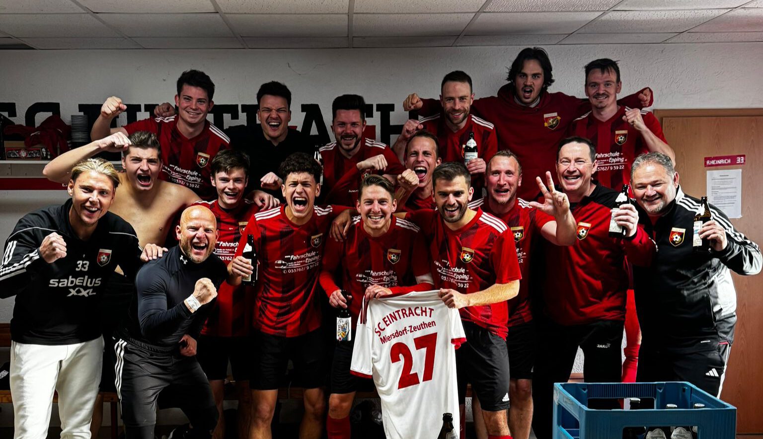 Den Sieg widmet die Mannschaft Nils Brauer, dokumentiert das mit dem Trikot mit der Nummer 27 auf den Jubelfoto. Nils hatte sich vor einer Woche beim 7:1 beim RSV Waltersdorf schwer am Knie verletzt.
