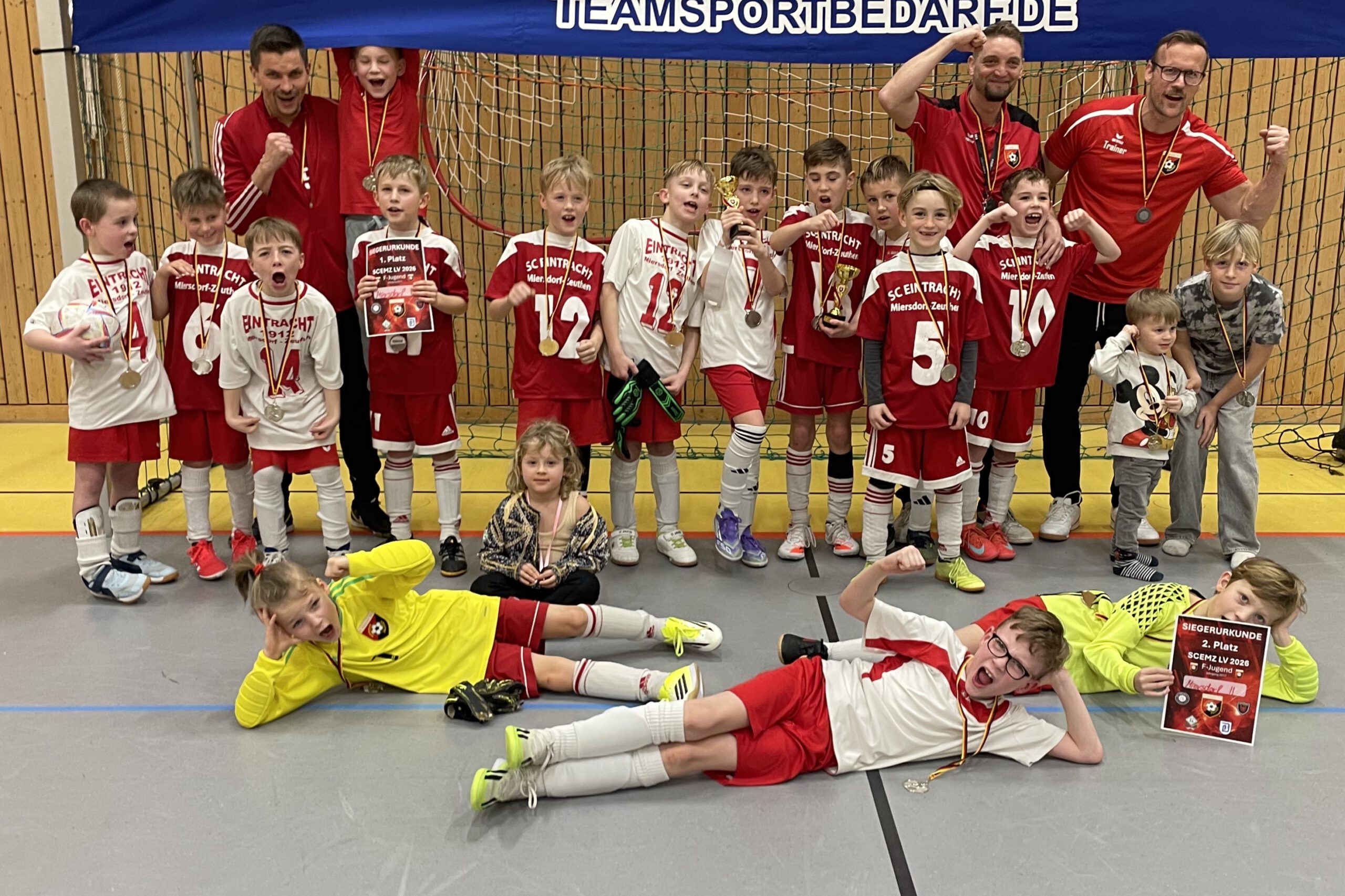 Heimsieg für die Eintracht! Beim Hallenturnier unserer F1-Junioren belegen der SCEMZ I und SCEMZ II die Plätze 1 und 2. Im Finale setzt sich der SCEMZ I mit 3:1 durch.