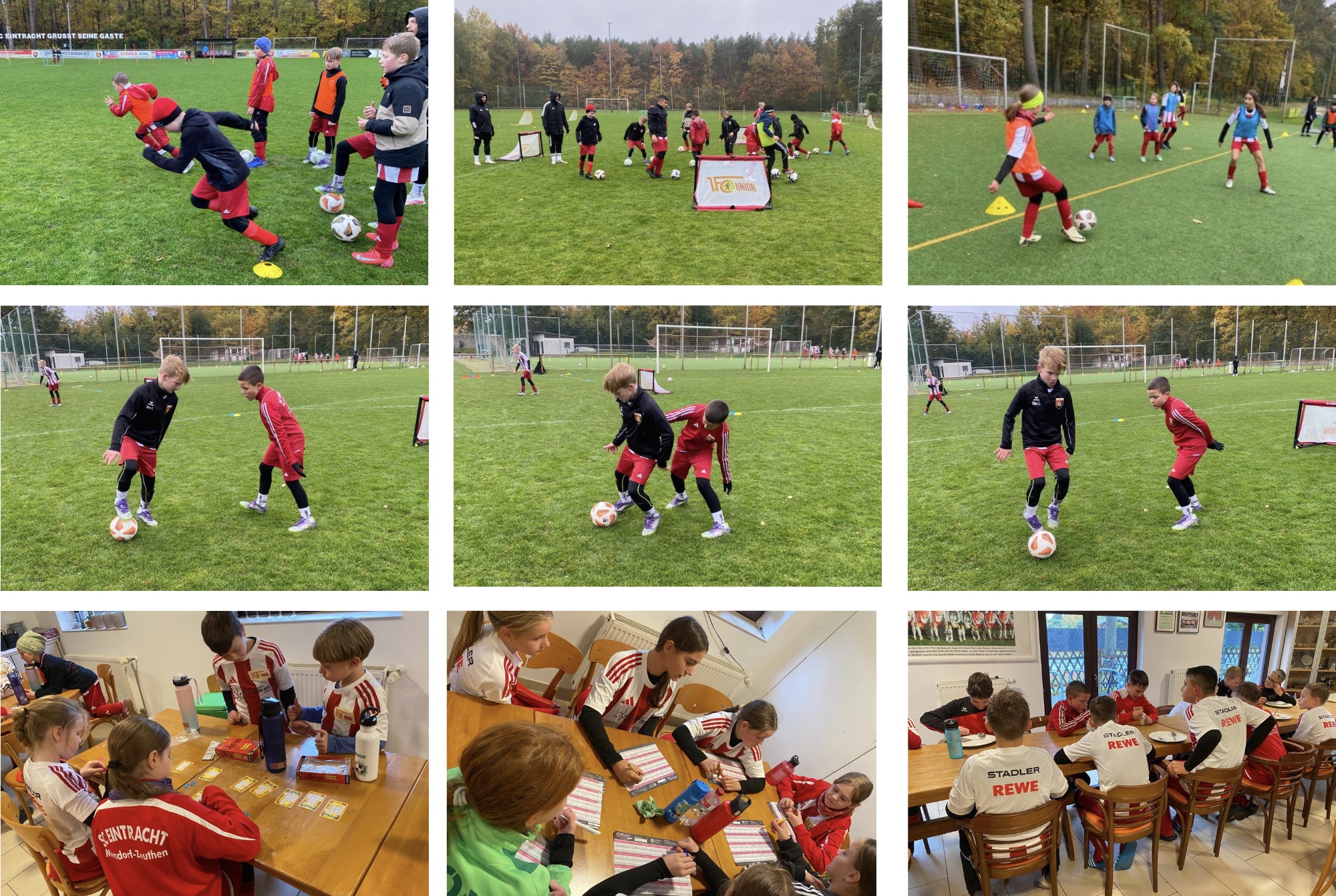 Die richtige Finte anwenden, überraschende Dribblings machen, die beste Lösung finden beim 2 gegen 2 oder 3 gegen 3– das stand vor allem im Mittelpunkt des zweiten Tages beim Union-Feriencamp. Das Wetter? War schon mal besser. Mittags nieselte es ein wenig, aber das stört beim Fußball ja eigentlich nicht.