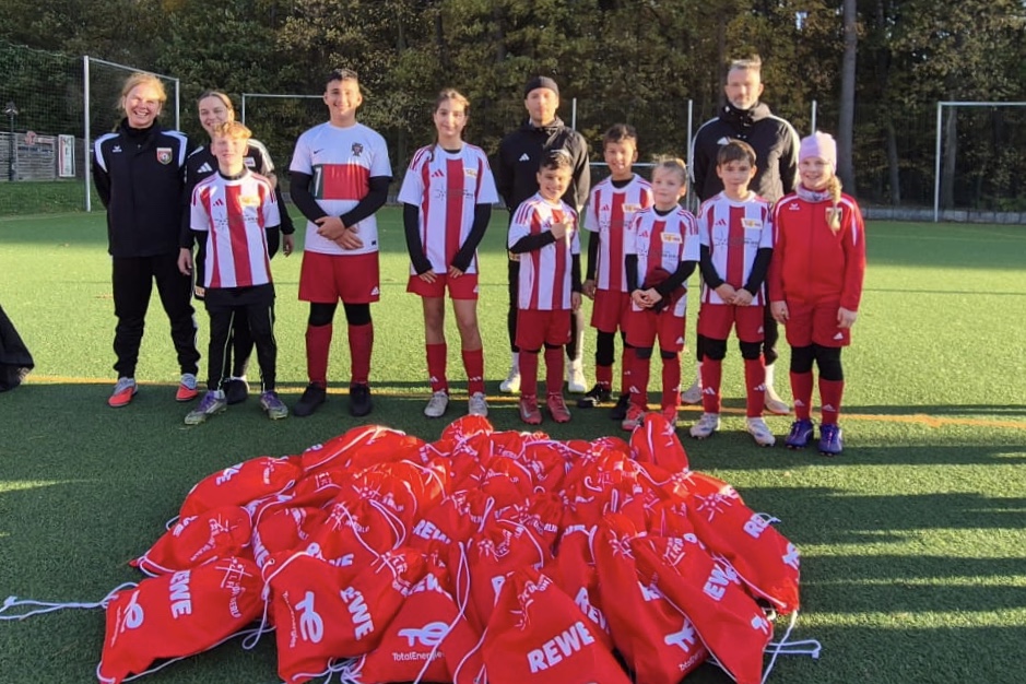 Zum Schluss gab es für jedes der 46 Kindern noch eine schöne Erinnerung: ein Sportbeutel mit einer Trinkflasche, einen kleinen Union-Ball und einen 10-Euro-Gutschein für den Union-Fanshop.