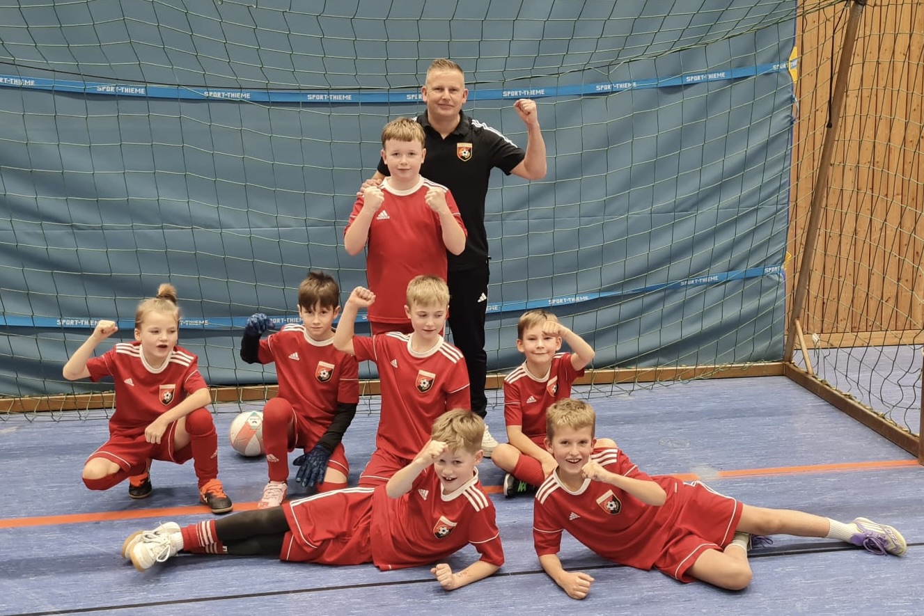 Die Mannschaft besteht aus den E1-Kickern Jakob, Mads, Anton, Arthur und Mika, verstärkt von Jan und Daniel aus der E2 sowie Jonas (2018) aus der F1.