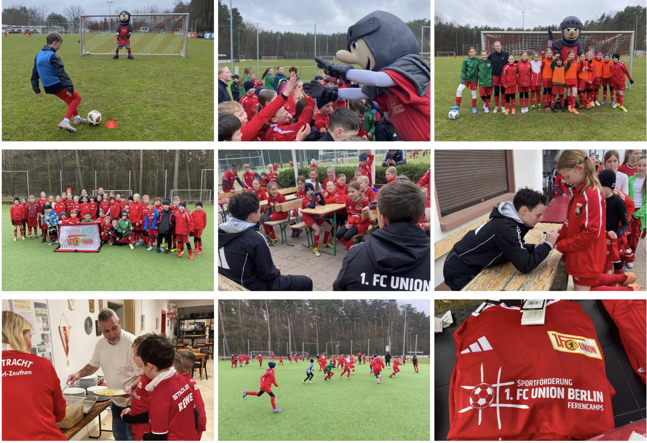 Erster Tag des Union-Feriencamps am Wüstemarker Weg – und gleich hoher Besuch: Erst ist Ritter Keule da, dann schaut Tomke Schneider vorbei, Spielerin der Bundesliga-Frauen unseres Partnervereins.