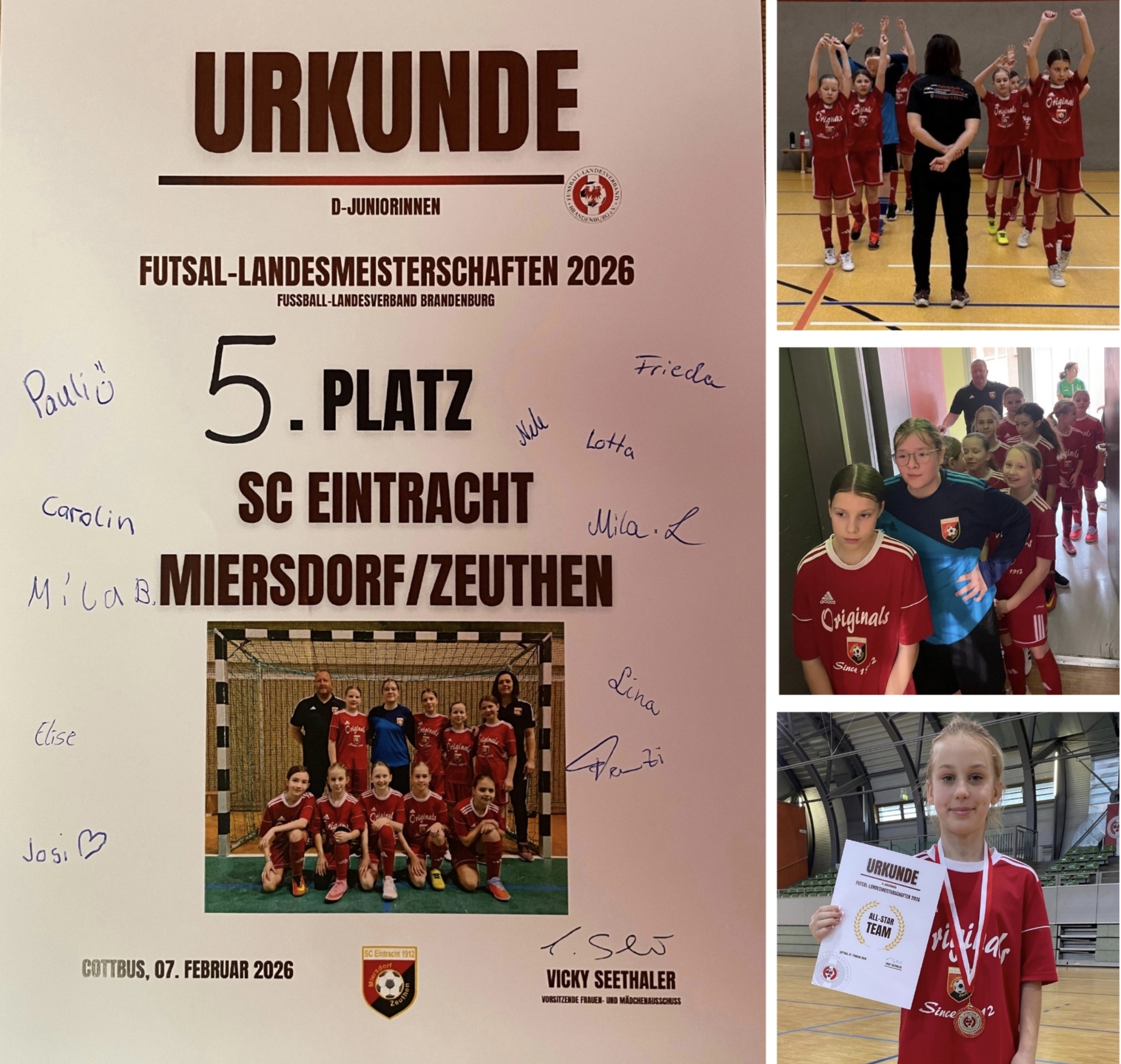 Bei den Landesfutsalmeisterschaften in Cottbus verpassen sie nur knapp das Halbfinale, gewinnen dann aber das Spiel um Platz 5 gegen die SG Schwanebeck mit 1:0.