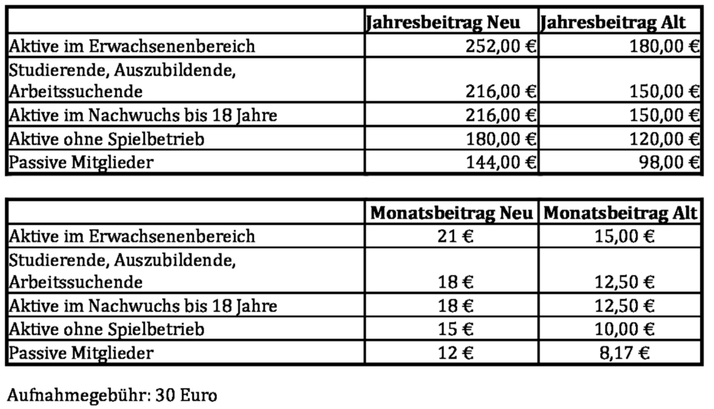 • Bei Germania Schöneiche beträgt der Standardbeitrag 210 Euro, Kinder und Jugendliche zahlen 180 Euro.