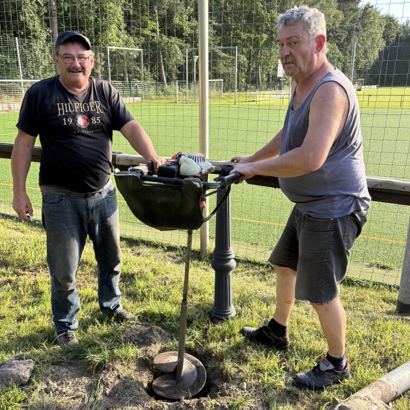 Wir sehen unseren Platzwart Dietmar Goldhorn und Frank Robbel, einer der fleißigsten Helfer bei den Platzarbeiten, im Einsatz!