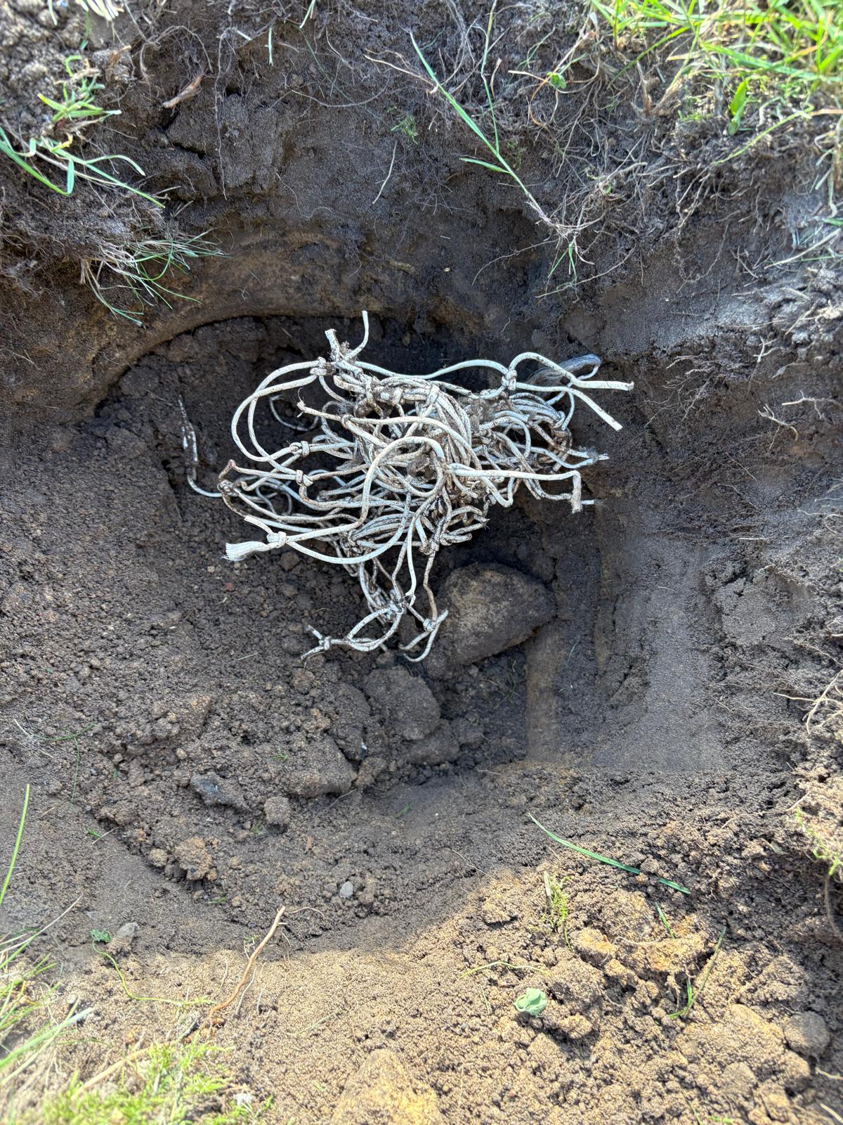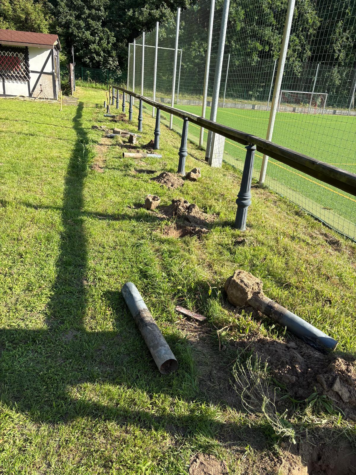 Übrigens: Bei den Buddelarbeiten wurde ein altes Tornetz aus DDR-Zeiten gefunden. Es musste mit einen Seitenschneider durchtrennt werden.